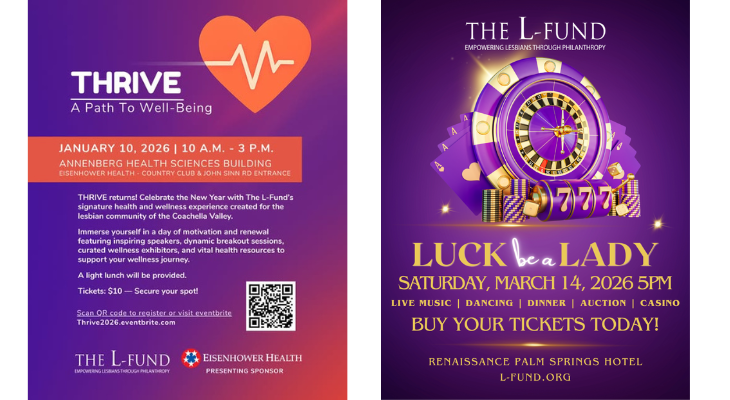 The L-Fund empowers cis, trans, and queer-identifying lesbians through financial crisis assistance as well as assistance in the areas of health and wellness, the arts, and education in the Greater Coachella Valley.